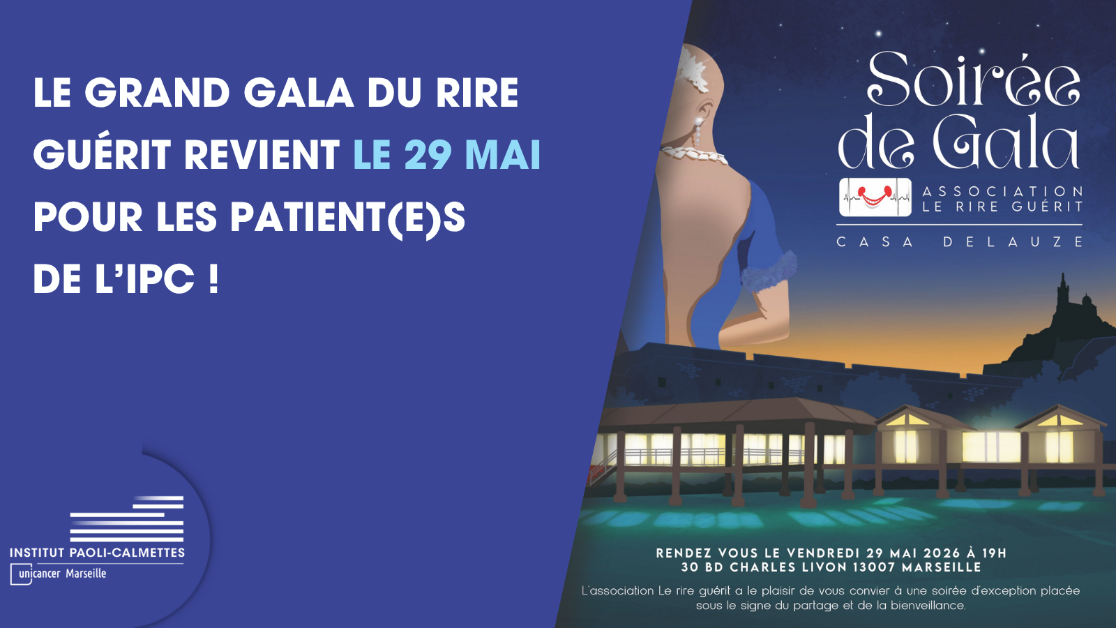 Le grand Gala du Rire Guérit revient le 29 mai 2026 pour les patient(e)s de l’IPC 8 avril 2026 - Une soirée d’exception placée sous le signe du partage, de la joie et de la bienveillance attend les patient(e)s et ancien(ne)s patient(e)s de l’IPC, vendredi 29 mai 2026.