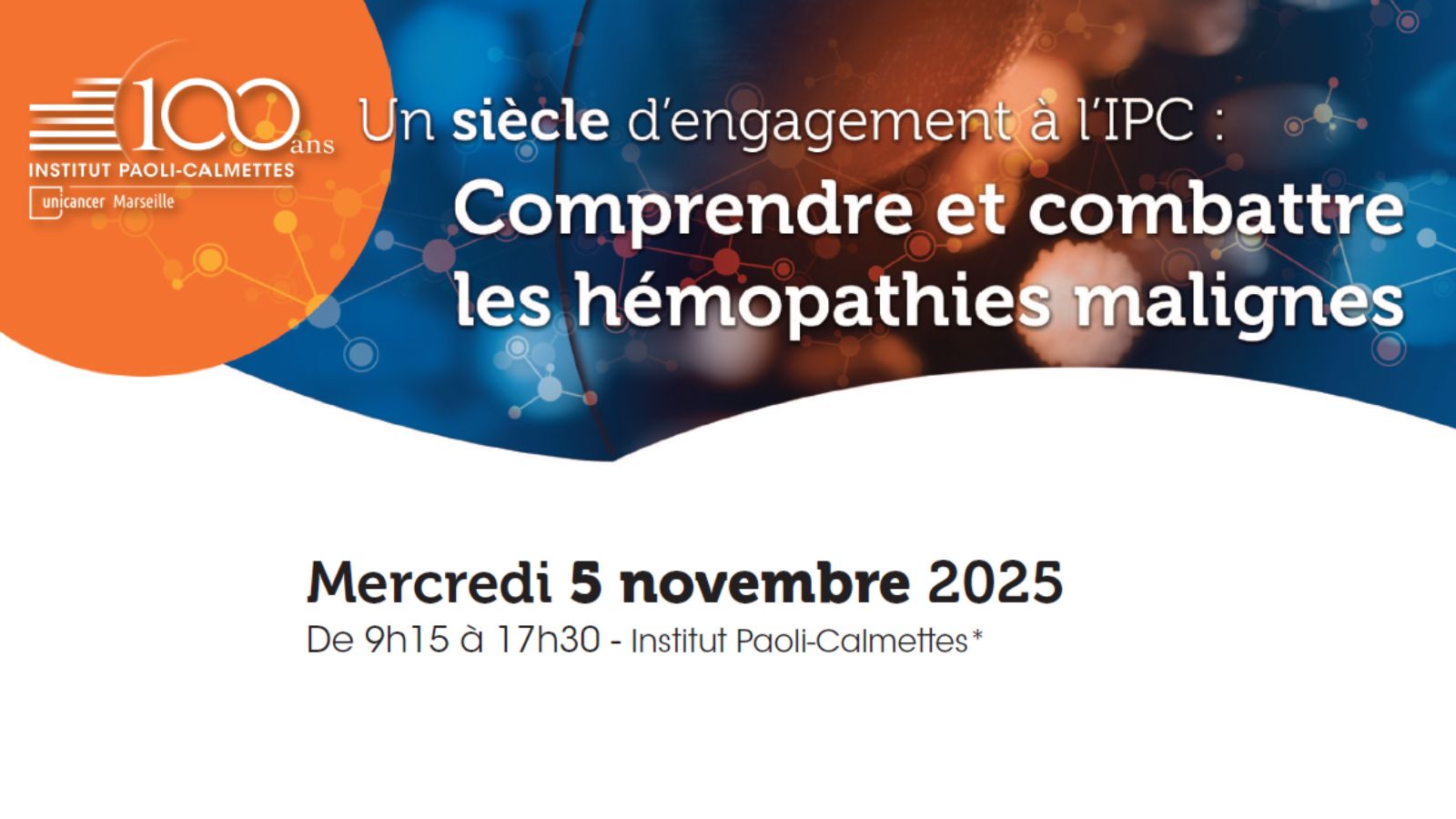 Dans le cadre du centenaire de l’Institut Paoli-Calmettes, une journée scientifique exceptionnelle se tiendra le mercredi 5 novembre 2025 à Marseille, consacrée à un siècle d’avancées dans la compréhension et le traitement des hémopathies malignes.