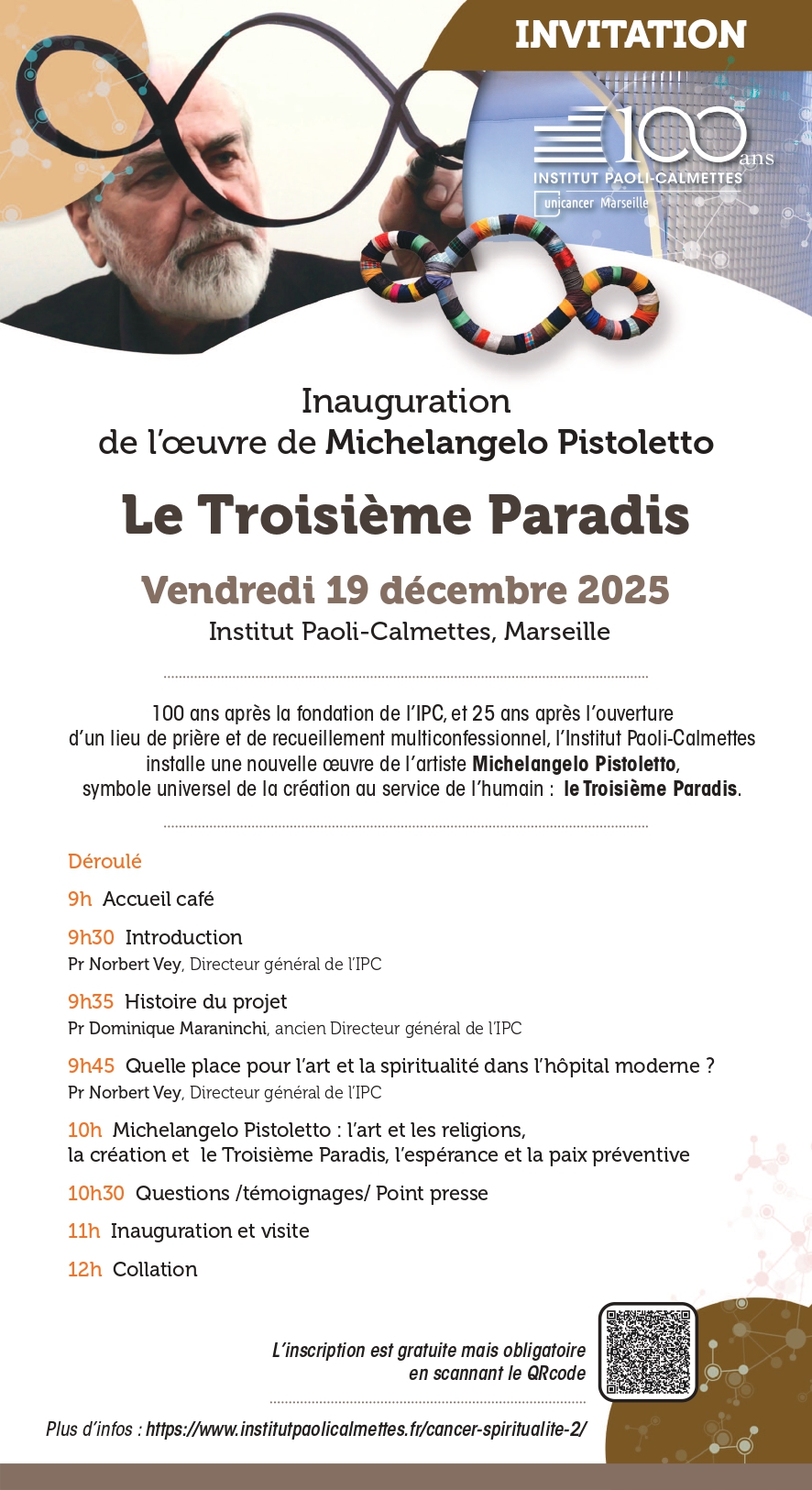 Nous avons le plaisir de vous convier à l’inauguration de l’œuvre « Le Troisième Paradis » de Michelangelo Pistoletto, symbole universel de la création au service de l’humain, qui se tiendra :