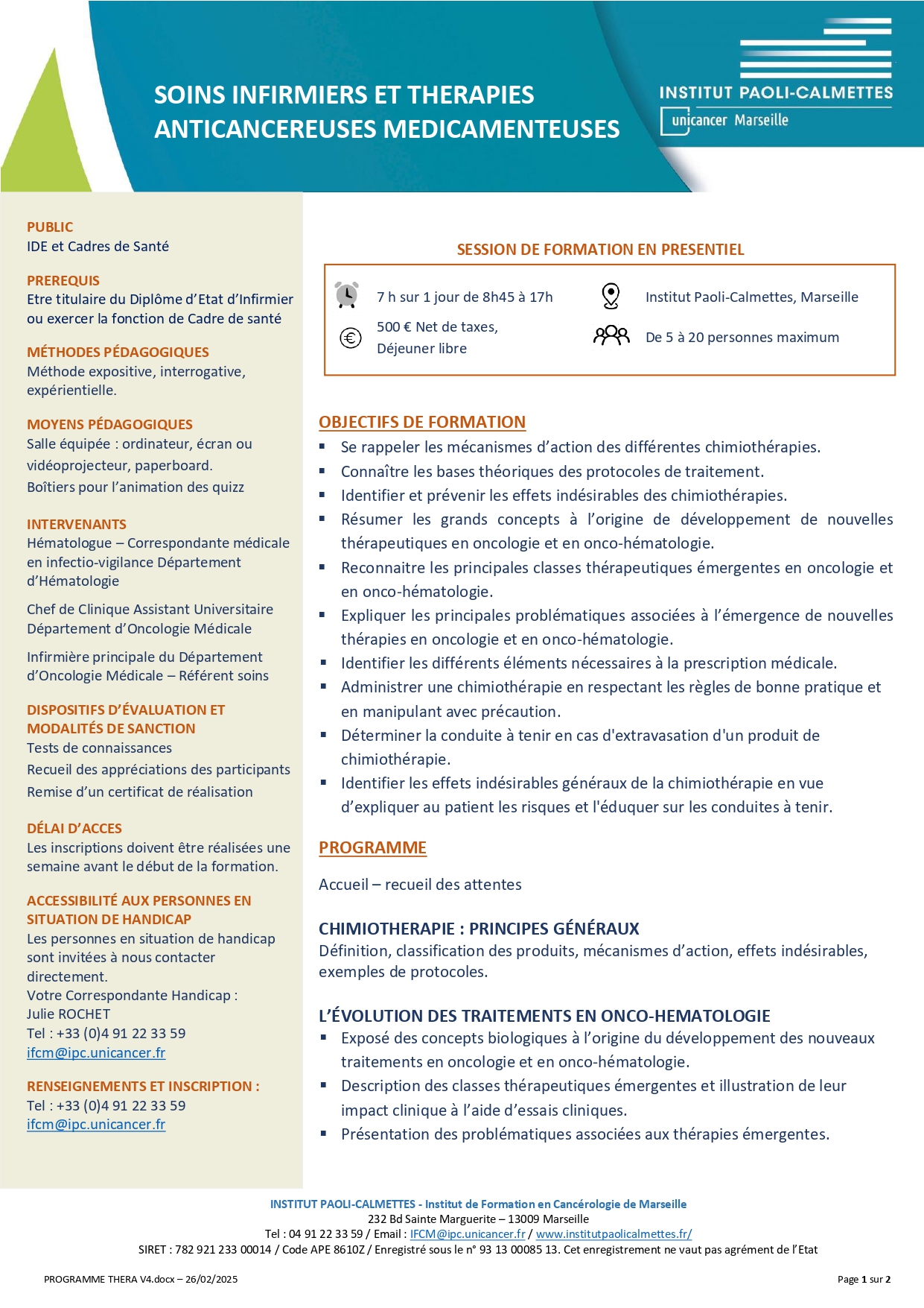 SOINS INFIRMIERS ET THERAPIES ANTICANCEREUSES MEDICAMENTEUSES
